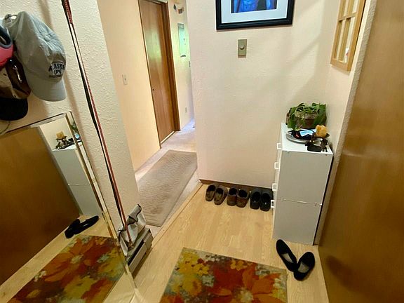 There is a beautiful filtered view of mountains and water right out on the quaint open deck off of the living space of this Crow Hill Condo that features 2 bedrooms, 1 bathroom, and a spacious carport with additional storage. There is a short flight of stairs down to the front door. The main bedroom features a "walk-through" closet with access to the bathroom. The second bedroom features a murphy bed for someone to stay without a clunky bed taking up your spare room all the time! The Large entry storage closet could be used as a pantry, office, workout space and so much more! Close to schools, restaurants, the library, the theatre, and close to public transportation!