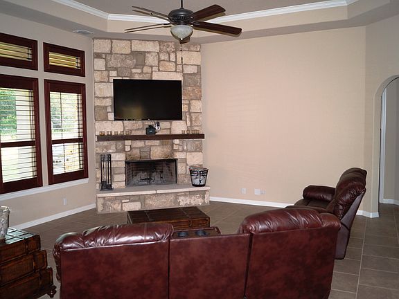 Single Story stunner on a quiet street in Havenwood at Hunters Crossing! 4 bedrooms/ 2.5 baths flank a large, open kitchen and living area. Kitchen features stainless appliances & massive island w/ room for 6 bar stools. Interior features include custom cabinets, high ceilings, crown moldings, granite counter tops and plantation shutters throughout. Situated on over an acre, this property provides the perfect space for a pool! Gated neighborhood features tons of amenities including 3 pools, and tennis crt.