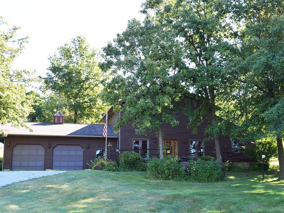 Acreage on hard surface road! 4 bedrooms, 2 1/2 baths. Grand, master suite located on the main level. Spacious office with French doors exiting to a covered patio also on the main level. Large kitchen and laundry, open living room and half bath also on the first floor. Upstairs there are 3 bedrooms, an office and full bathroom. The basement is finished, with an entertaining bar, pool table and plenty of open space for an additional family room, exercise room or bedrooms. Large 36'x60' utility building on the property with partial concrete floor. Vinyl fencing encloses the pasture. 4.83 total acres. You can call between 8am-10pm 6419191338 or text anytime.