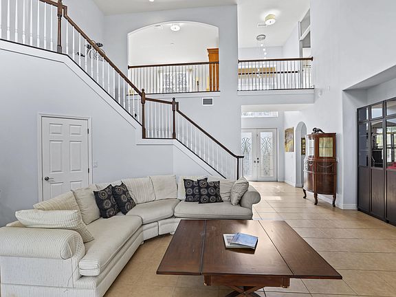 Perfect for multi-generational living, this spacious estate home is built w/ CBS construction, impact windows, doors & sited on a premier fully fenced lakefront lot. The gracious living area has volume ceilings and an outstanding floor plan. The primary suite plus additional bedroom are conveniently located on the main level. Upstairs, you'll find the remaining bedrooms, a loft, and a distinctive ''West Wing'' offering two bedrooms plus a grand bonus/flex space (perfect for a movie theater, golf simulator, club room, or any dream setup.) Other highlights include renovated primary bath, upstairs balcony, an additional staircase, extended driveway, and a striking front entry door. Exceptional value in this well-built home, ideally located within a gated community just minutes from I95
