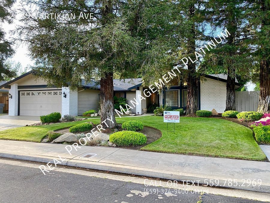 3 Bedroom | 2 Bathroom | 2336 Sq. Ft. | Built in 1986 Ranch style home. Large living areas. Front living room and dining room open to the kitchen. Kitchen has black granite countertops, white cabinets, and a walk in pantry. Appliances include electric range/oven, dishwasher, refrigerator and microwave. Dinette off the kitchen opens to the family room with brick wood fireplace and wet bar. Plantation shutters, vaulted ceiling, and two sliding doors open to the backyard. Main bedroom has a second brick wood fireplace, and sliding door to the backyard. Main bathroom has a step in shower and an L shaped vanity with dual sinks and mirrors. Walk in closet. Two additional bedrooms. Hall bathroom has dual vanities, and large soaking tub. Interior laundry has cabinet storage, utility sink and hook ups (gas/electric) leads to the attached 2 car garage. Backyard has a pergola covered patio and lush green landscaping. Enjoy the garden/park like backyard. Yard care is provided. Credit score above 650 REQUIRED. Non smoking. No pets. Renter's insurance is required. Cross streets are Armstrong & Sierra. Clovis schools. DRE# 01901101. All information is deemed reliable but not guaranteed and is subject to change. Non Smoking Renter's Insurance Required