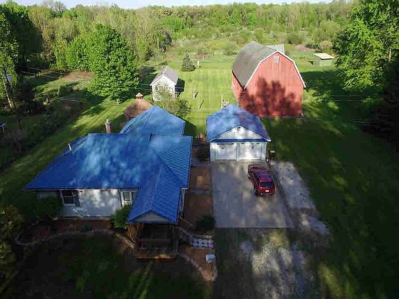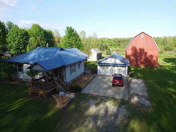 Meticulously maintained home and a gorgeous scenic 10.06 acre lot. House and heated garage have newer blue metal roof. This one-of-a-kind property boasts a huge screened-in gazebo,fully insulated garage, two large barns and two medium size out-buildings. The perfect lot with trees around much of the perimeter. This amazing property is a must see and will not last long!