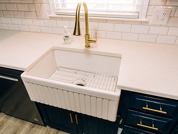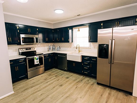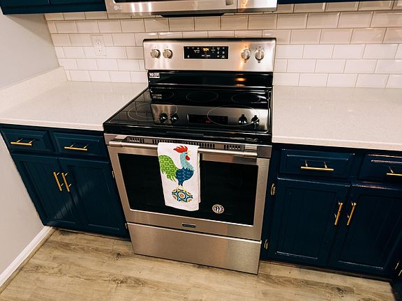 Exquisitely remodeled 3BR 2 1/2 B townhome with new laminate flooring down & new carpet up, new paint in and out, new light fixtures & fans. Spacious family room w/ bay window & formal DR. Gorgeous eat-in kit w/ quartz counters, white subway tile backsplash, striking blue cabinets w/ gold pulls, farm sink, stainless appliances. MBR has his & her closets with new wire shelving. Baths updated w/ new quartz vanities, fixtures, lighting, toilets, tubs w/tile walls. New landscaping in front & back with covered patio & new privacy fence. New fire wall in attic. One year Old Republic Warranty.