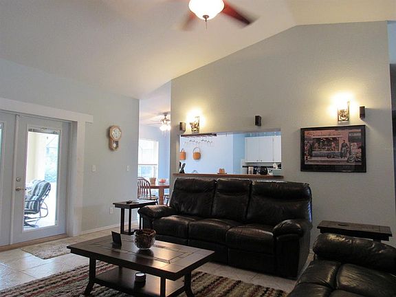 Nicely maintained home with nature all around. Over an acre to call your own. New roof in 2019, new heat pump/ AC in and out in 2018, new water softener/filtration system in 2018. Generator with buried 500 gallon propane tank - doesn't power whole house but covers main needs if the power goes out. Salt water pool with heater and hot tub. Fenced back yard. Workbench (not cabinets) in garage, wall unit in living room and queen murphy bed in guest room are optional in the sale. Access to newly renovated community center and private River Park as part of Rainbow Springs Community.