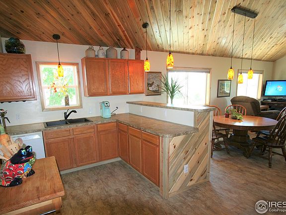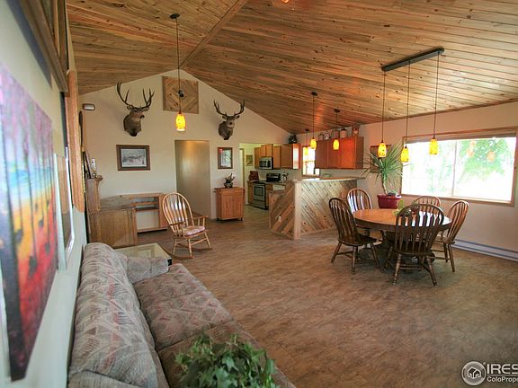 A peaceful and scenic place to call home, this gorgeous property is located just six miles north of Fort Morgan. Originally a farm house, it has been completely updated. Blue pine paneled cathedral ceilings in the open concept living area, wood burning fireplace, sun room, deck, patio and a swing on the front porch! There's a two car attached garage AND a shop! Quality Water and a deeded well. Great views from both the front and back of the property!