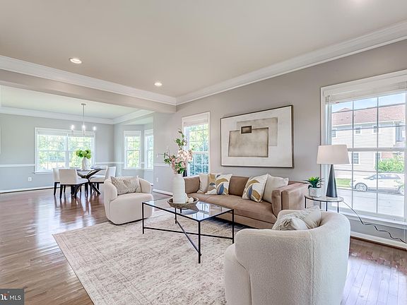This beautiful colonial home offers over 5,000 square feet of refined living space across three beautifully finished levels, with 5 bedrooms and 4.5 bathrooms. The home is surrounded by a meticulously landscaped yard spanning more than a quarter acre. Nestled within a neighborhood bordered by protected conservation land, the surrounding greenery is preserved—ensuring enduring natural beauty and privacy. Residents also enjoy resort-style amenities, with the community pool just one block away. Entering the home, you are greeted by gleaming hardwood floors and elegant crown molding that flow seamlessly throughout the main level. The gourmet kitchen is a chef’s delight, showcasing freshly painted white cabinetry, granite countertops, a center island, stainless steel appliances, and a brand-new cooktop. An inviting family room with a fireplace adjoins the kitchen, while the sun-drenched breakfast area offers direct access to the expansive deck, ideal for alfresco dining and entertaining. The formal living and dining rooms exude sophistication, with the dining room highlighted by chair rail accents, over-head lighting, and a bump-out window that illuminates the space with natural light. A private study and a stylish powder room complete the main level. Upstairs, the lavish primary suite is a serene retreat, boasting a spacious walk-in closet and a spa-inspired ensuite with a glass-enclosed shower, soaking tub, and dual vanities. Three additional bedrooms on this level are generously sized, including one with a private ensuite bath, while the remaining two share a well-appointed hall bathroom. The laundry room is located on this level as well, creating easy-living. The fully finished walk-out lower level provides exceptional versatility with a sprawling recreation room designed for entertaining—perfect for movie nights, game day gatherings, or casual lounging. A fifth bedroom and full bath offer ideal accommodations for guests or extended family. Outside, the home’s curb appeal is matched by a lush, expansive backyard with a manicured lawn, providing a private oasis for relaxation, play, and entertaining.