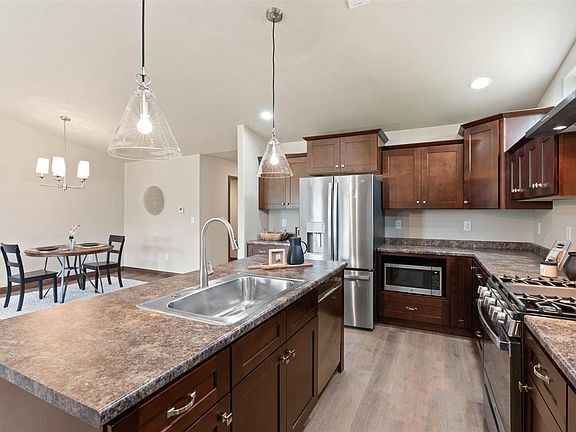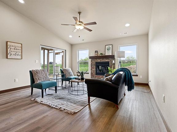 Welcoming covered front porch leads you into this cozy 3 bedroom new construction zero lot home. This well designed home promotes open living spaces inside. Inviting kitchen with large island & walk-in pantry, tasteful maple cabinetry & SS appliances. Spacious LR with gas fireplace & stone surround. Dining area leads to a screen porch overlooking the countryside. Home includes an excellent primary bedroom with a large en-suite including dual vanities and a expansive walk-in closet with convenient laundry/mud room access.  Mud/laundry room located off the 2 car garage. 2 additional bedrooms & bathroom complete the main level. This popular open floor plan will work great for everyone! You will enjoy the private countryside views! Located in a desirable new development, Kalona SouthTown Area. Close to nature trails, golf course, ponds, beach, parks & more! Enjoy living in a new kind of development immersed in nature.