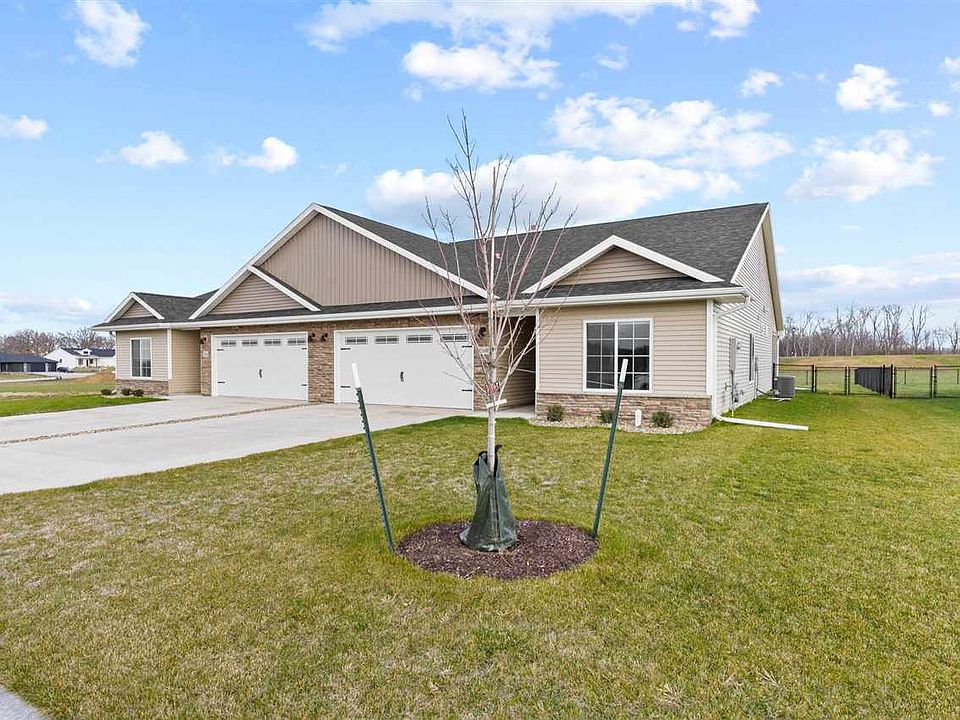 Beautiful 3 bedroom new construction zero lot home. This well designed home promotes open living spaces inside. Inviting kitchen with large island & walk-in pantry, tasteful maple cabinetry & SS appliances. Spacious LR with gas fireplace & stone surround. Dining area leads to a screen porch. Off the screened porch is a large patio, fenced yard and a newly added garden shed. Home includes an excellent primary bedroom with a large en-suite including dual vanities and a expansive walk-in closet with convenient laundry/mud room access. Mud/laundry room located off the 2 car garage. 2 additional bedrooms & bathroom complete the main level. This popular open floor plan will work great for everyone! Located in a desirable new development, Kalona SouthTown Area. Close to nature trails, golf course, ponds, beach, parks & more! Enjoy living in a new kind of development immersed in nature.