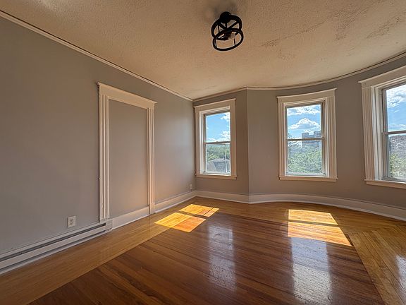 Stunning light and bright 2 Bedroom apartment now available for immediate occupancy. This apartment comes with a spacious living room/dining room an eat-in-kitchen, refinished hardwood flooring, new lighting, new windows, and has been freshly pained from top down. This building comes with plenty of off street parking and a spacious back porch. Conveniently located and priced to rent dont wait! schedule a tour today!