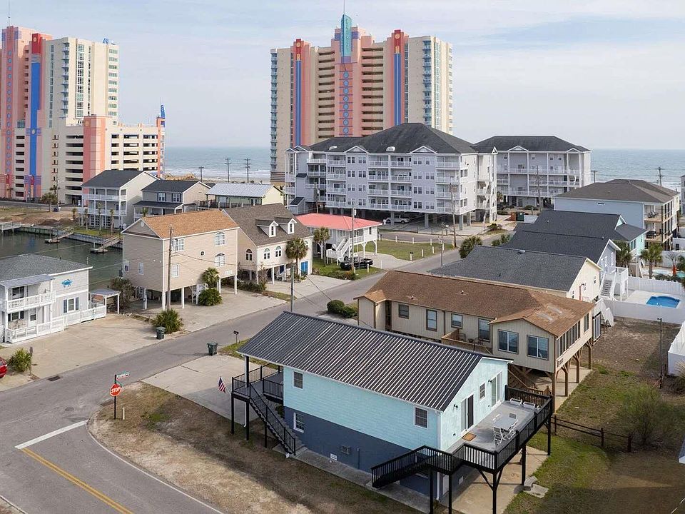 Don't miss this opportunity to own this recently renovated 3 bedroom, 2 bathroom home located on a rare corner lot, just a block from the ocean in the heart of North Myrtle Beach! This home features a storage area on the ground level, and a fully renovated 3 bedroom 2 bathroom home on the second floor with a large deck with a view of the channel across the street! The spacious open floor plan of the main living areas allows room for the entire family to gather, with LVP flooring and beautifully coordinated furnishings in every room. The kitchen is equipped with all appliances, updated cabinets and countertops, a backsplash, breakfast bar, and the perfect dining area leading to the deck! Each bedroom includes easy access to a bathroom, while the master also includes access to a luxurious master bath with double sink vanities and a tiled walk in shower, along with a sliding glass door to the deck. Perfectly situated close to all of the area's famous dining, shopping, golf, and entertainment attractions, just a short 5 minute walk or 2 minute golf cart ride to the beach! Whether you are looking for your forever home, a second home near the beach, or your next investment opportunity. You won't want to miss this! Schedule your showing today!