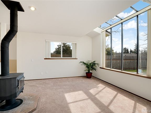 Sunny Sunridge Home-Step through the gate into a colorful garden with raised beds & fully-fenced yard. Enjoy light streaming through the big south facing window in the living room. Relax with good book in front of the cozy wood stove/fireplace. This 3 bdrm, 2.25 bath home is in a quiet, secluded neighborhood. En suite bath & walk in closet in Master Bdrm. Office/Den space. Lrg, clean 2 Car Garage. Easy access to I-5, Hwy 99, Hwy 2, Boeing, shopping, restaurants & More. Don't miss this Sunny Gem!