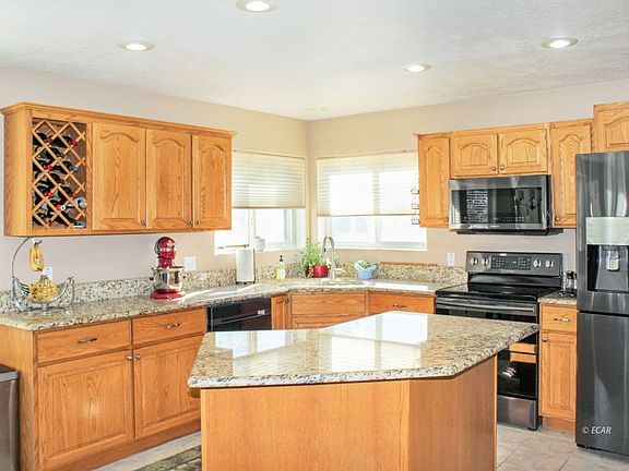 This gorgeous home is immaculate and ready for a new homeowner to fall in love with it! As soon as you pull up to the home, you're greeted with exquisite curb appeal from the mature landscaping, three car garage, RV parking & picture-perfect front porch. Upon entering the formal entryway, you can either move into the open living area, formal dining area/office, or upstairs to one of the large bedrooms. The open living area includes custom tile flooring, a gas fireplace and views of the spectacular backyard - over 1/3 of an acre IN TOWN!! The kitchen features granite countertops, new stainless steel appliances, pantry & an island. There is also a built-in desk area! The main level features a half bath for convenience. Upstairs, you have 3 bedrooms along with a loft area - the basement is truly a bonus including a den + wet bar/kitchenette PLUS another bedroom and full bathroom. The backyard is fully fenced, landscaped & has a great patio for entertaining. This home is spectacular - schedule your showing ASAP!