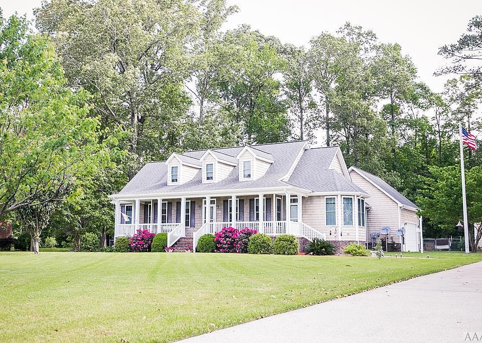 Enjoy the quiet country living with fantastic views of the Perquimans River & Sunsets on your oversized front porch. Beautiful custom built home with expansive views from almost every room.The kitchen with custom white cabinets & complete appliance package, plenty of cabinets, & built-in-desk. Huge laundry room with utility sink & loads of cabinet space & closet. Spacious Master suite w/views of sunsets on the river. Large master bath with jetted tub, shower & walk-in-closet. Beautiful hardwood flooring, crown molding, 9t. ceilings. Large frog/game room or media. Attach garage & detach garage