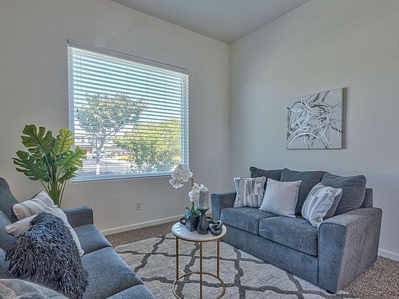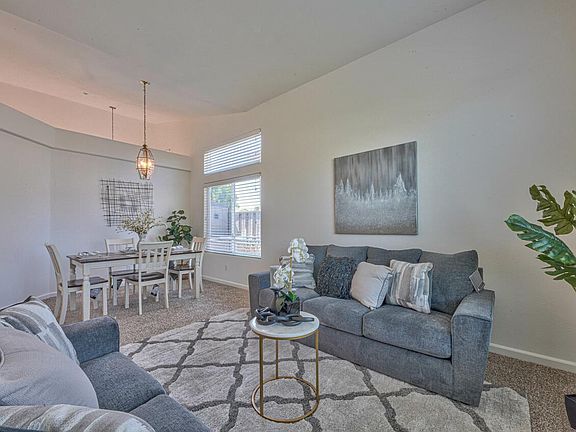 Welcome to this delightful single-level Harrod built home boasting high ceilings that create a spacious, airy ambiance. Bask in the natural light streaming into the inviting living and dining areas. You'll find a separate family room with fireplace and a charming breakfast nook seamlessly connected to the open concept eat-in kitchen. Eco-conscious living with energy-efficient features, including solar panels and a tankless water heater. The open floor plan includes indoor laundry, a dedicated primary bedroom, complete with a generously sized walk-in closet & sliding door leading to the back patio. Step into your own private oasis with a backyard with lush fruit trees. Need more space? There's even an option to easily add a fourth bedroom or workshop. Cozy and comfortable living with brand new, plush carpeting and freshly applied interior paint. Rest easy knowing that the home has undergone recent fumigation. Don't miss out on this wonderful opportunity for comfortable, flexible living!