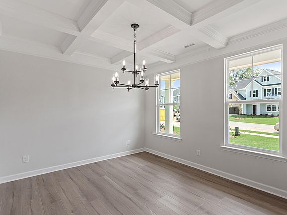 Welcome to the Victor, a beautifully designed five-bedroom, three-and-a-half-bath home that masterfully blends elegance with everyday practicality. As you step inside, you'll be greeted by an inviting layout featuring a dining room with coffered ceilings, a family room with a gas fireplace, and a bright, sun-filled sunroom that fills the home with warmth and natural light. The spacious primary suite is conveniently located on the main floor, offering a luxurious retreat with a large walk-in shower, double vanities, and plenty of closet space. Upstairs, you'll find four additional bedrooms, each thoughtfully designed with comfort in mind, as well as a generously sized bonus room that offers endless possibilities—whether you envision a playroom, media room, or a personal getaway. Every detail of the Victor has been carefully curated to combine form and function, creating a refined yet welcoming atmosphere perfect for modern living. From its open-concept spaces to the beautifully appointed finishes, this home offers both style and comfort for everyday living and entertaining. Nestled in the desirable Georgia's Landing community, just minutes from Downtown Raleigh, offering easy access to shopping, dining, and entertainment. Enjoy resort-style amenities and the perfect blend of luxury and convenience. Your dream home is waiting—schedule your tour today!