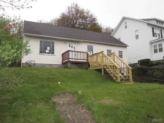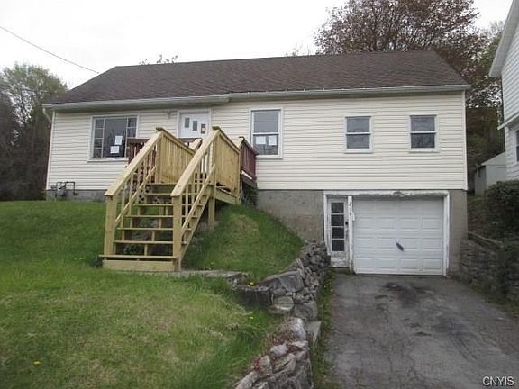 No investors offers will be negotiated for first 30 days of listing per seller. Cape Cod style home features 2 bedrooms on 1st floor, full bath, kitchen with adjacent dining area and living room. 2nd floor has 2 bedrooms and small sitting or office area in between the 2 bedrooms. Full basement with laundry area and basement is walk out into garage area. Located in Solvay Electric power district.