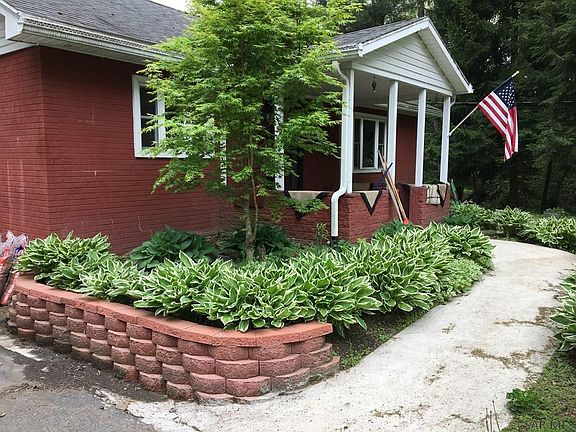 Quiet, private, country setting for this brick, 1.5 story home on 1.323 acres. The kitchen and bathroom have been updated and one bedroom and the bath are on the main floor. There is a nice-sized living room with fireplace and a formal dining room. Enjoy the summers under the pergola and a hot tub is included for year-round enjoyment! The 1.5 car, heater garage is attached and the home is serviced with oil, forced air heat. Laundry tub is plumbed for drain, but not water supply.