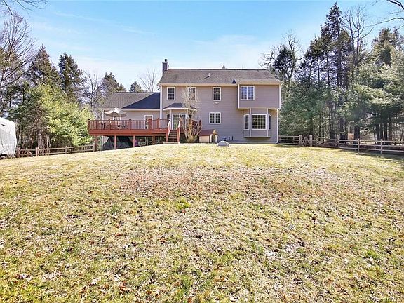 Call Pat Blanko 203-206-9194! Follow the brick walkway to this stunning 4 Bedroom Colonial located on 1.54 private country acres! Gracious entry foyer with turning staircase, detailed trimwork and hardwood floors on main level! Formal living room with dentil/crown molding features beautiful columned trim doorway entry to the formal dining room with tray ceiling, dentil molding and bay window. Spacious eat-in kitchen highlights granite center island, tile backsplash, stainless steel appliances and eating area with sliders to the deck. Expansive great room features vaulted coffered ceiling, custom built-in entertainment center and bookcases, elaborate mantle for the gas fireplace and oversized windows streaming sunshine! Also, on the main floor is an office with French doors! The second floor boasts large master bedroom suite with walk in closet and luxurious private bathroom with double sink vanity, corner jet tub and separate shower. Three additional bedrooms, full bath and laundry on 2nd floor. Additionally a 25x18 finished family room/rec room in the lower level! Private country road, Expansive deck overlooks level, pretty yard with large area newly fenced! Call Pat Blanko 203-206-9194!