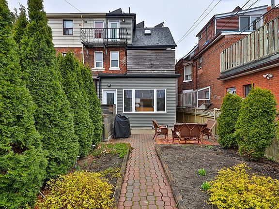 Over 1300 sq. ft luxury rental in bright, beautiful character home. Three bedrooms (or two bedrooms with additional living room with bay windows). Two floors in home on quiet, tree-lined street in heart of Little Italy. Renovated with exposed brick throughout. Garage parking available on request (please inquire). Hardwood floors, tall windows. 7 high end appliances. Gas fireplace. Modern open concept kitchen. In-suite laundry. Private second floor balcony and third floor Juliette balcony. Minutes to University of Toronto or financial district. Steps to College Street shops, restaurants and nightlife.