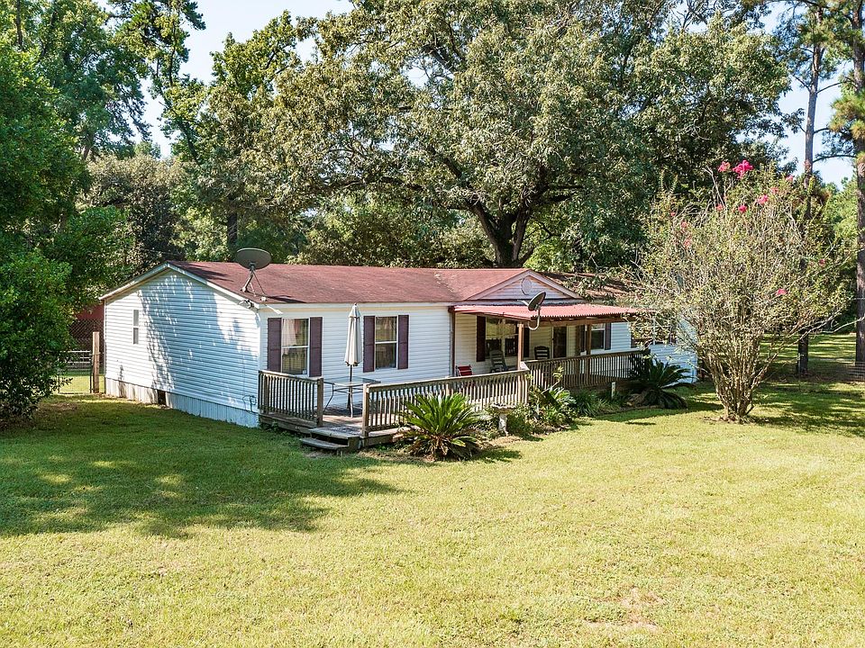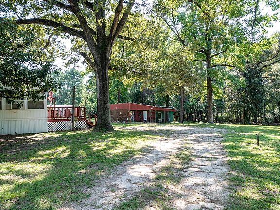 Welcome to Goodrich! This beautifully secluded 3.1 acres of property features a beautiful 3 bedroom 2 bath manufactured home, 3 vehicle carport, storage shed, greenhouse w/workshop, and stalls for equipment. It features a Covered front porch with an open deck and partially covered back porch with back deck. Large Living/Dining area that is open to the Kitchen. The Kitchen features lots of counterspace and a Butcherblock Island. Additional Den space is great for a home office or quiet reading area. Plenty of room for entertaining or relaxing in the country! Easy commute to Lake Livingston or surrounding areas as the close proximity to Hwy 59/69.