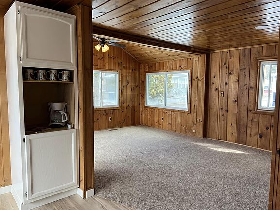 Cute, clean, cozy cabin 5 doors down from beautiful Houghton Lake. Sunset views are fantastic from this part of the lake! This 2 BR knotty pine is a charmer and has been refreshed with new vinyl flooring, carpet, appliances (fridge, gas stove, microwave) and cabinets. A gracious utility room offers 3 closet spaces. The garage is extra large and has a side room that has great potential for a fun man cave or she shed. There is a cozy firepit, to boot. Walk to the convenience store, the park or one of the best bar/restaurants around – The Spike Horn. This home also provides a private drive with room for multiple cars and/or a boat.