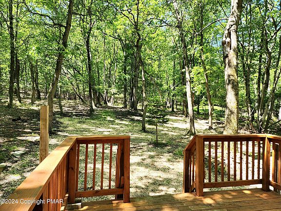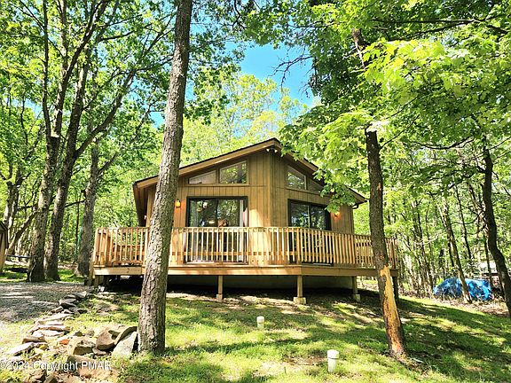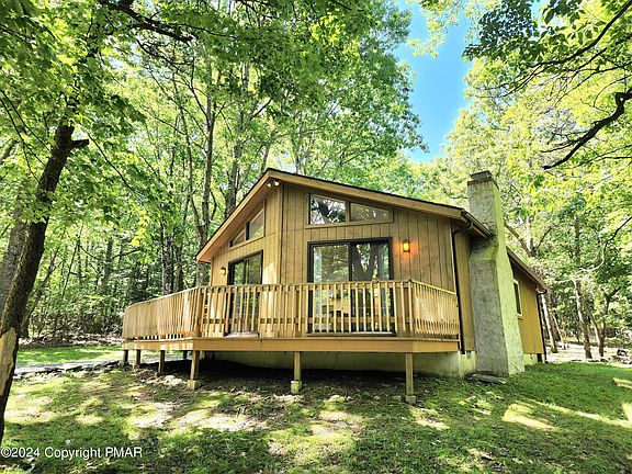 PROW FRONT CHALET style RANCH with 3 bedrooms and 2 full bathrooms in highly sought after BEAR CREEK LAKES in the POCONOS!! The wide open concept inside and wrap around deck makes great spaces for relaxing and entertaining! The cozy wood burning fireplace gives the rustic feel while the contemporary kitchen provides style and functionality. The luxurious community boasts a host of amenities highlighted by the 160+ acre fully stocked lake, 2 beaches, heated Olympic sized swimming pool, tennis, basketball, volleyball, & bocce ball courts, a clubhouse, & more. Nestled in the heart of the POCONOS, its conveniently located just minutes from so many Pocono attractions: ski resorts, indoor water parks, trails, whitewater rafting, concert venues, HISTORIC DOWNTOWN JIM THORPE, and so much MORE!