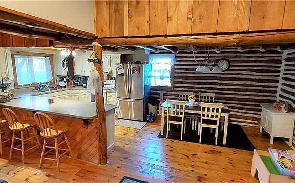 Quaint log home nestled on over an acre of property. This home offers 3 bedroom, 2 baths with a potential of adding a master bath. This rustic home boasts an open floor plan, cathedral ceilings, wood fireplace in living room, den or possible 4th bedroom on the upper level, and a spacious partially finished basement. Two stall detached garage is also offered. The possibilities are endless!