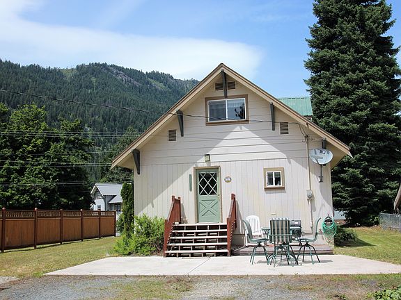 Enjoy peaceful evenings sitting on the classic front porch of this recently remodeled cottage home in the city limits of Leavenworth. The landscaped lot is partially fenced with a spacious back yard patio for summer entertaining. The open concept family room & kitchen offers large view windows with lots of natural light and a wood burning rock fireplace. The kitchen has been recently upgraded with cherry cabinetry and granite counter tops. Master bedroom and bath located on the main level & two upstairs bedrooms with one full bath. The finished basement is an expansive bonus room with unlimited possibilities. Other upgrades include a paved driveway, Pex plumbing, new electrical panel, and hot water tank. The backyard features a one car detached garage with separate wood shed.