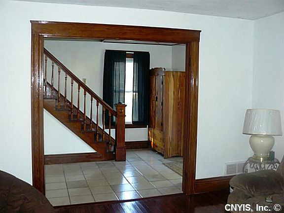 Fantastic Three Bedroom Colonial In Village Of North Syracuse! You'll love the rich, warm woodwork throughout this home. Spacious living room with refinished hardwoods. Huge dining room with custom mosaic tile floor boasts a beautiful window seat. Three large bedrooms with plenty of closet space. Huge fully fenced back yard perfect for entertaining! Updates include new hot water tank, furnace, windows, & roof within the last 5 years! Freshly painted throughout! Walking distance to shops in the village! Move right in to this very well cared for home!