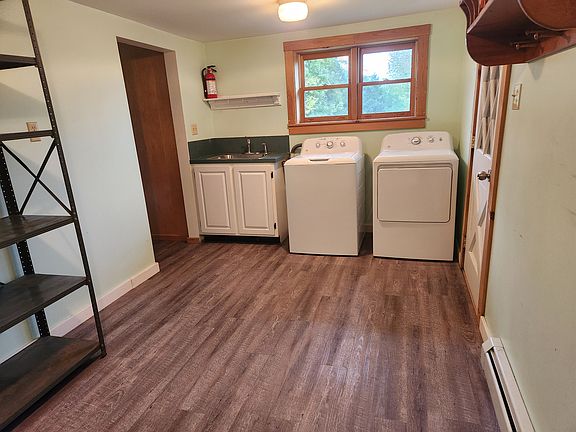 Large 4 bedroom house with hardwood floors upstairs and downstairs. Kitchen has refrigerator, oven and dishwasher with an eat in kitchen. Lots of cupboards. Large mudroom when you enter the house from the garage with washer and dryer. Living room, dining room and large bathroom with tub and a large shower. Plus 2 bedrooms on first floor and 2 bedrooms upstairs. Dry full unfinished basement. Large front porch and lots of lawn space. 2 car garage. Owner pays for water and sewer, plowing and lawn mowing. tenant responsible for heat, electric, internet, trash