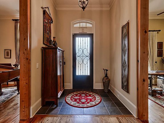 Amazing French Country architecture featuring stunning views, large outdoor living area, 3 bedrooms on the main level and open living areas! Attention to detail abound in this custom built masterpiece including cypress beams, interior exposed brick wall, custom cabinetry throughout, spa inspired master shower with zero entry and multiple heads and even an outdoor gas fireplace! Located overlooking water and holes 9, 1 and 18 of the Woodcreek Golf Club! This home also features amazing storage with ample walk-in attic space and a over-sized 2 car garage with a storage room. Call to set up your personal viewing of this magnificent home today!