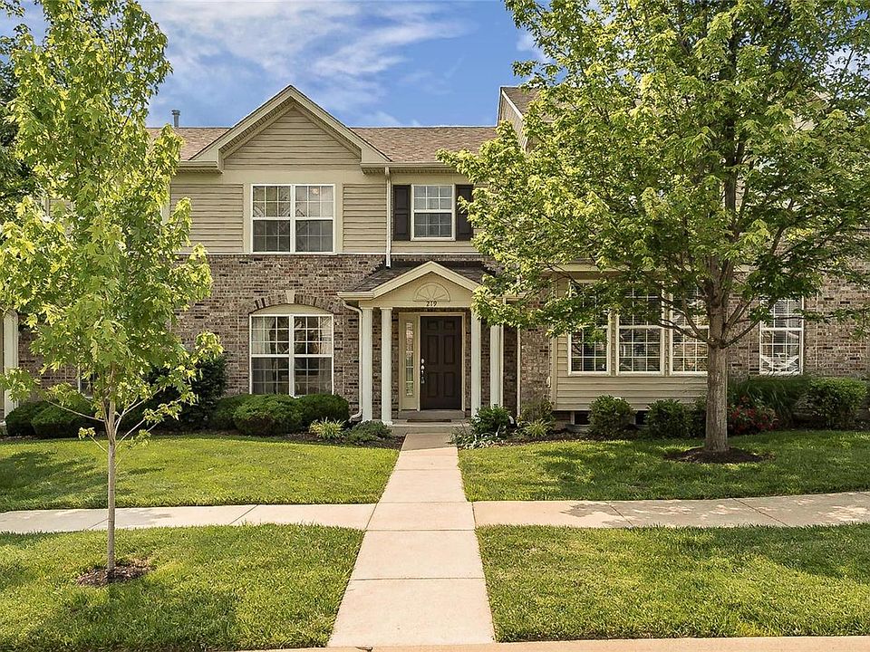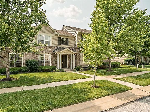 Super location! Walk past the lovely neighborhood lake with a fountain to The Pointe at Ballwin Commons to go for a swim, play on the playground, get in a workout or play some pickleball! This great townhouse is only 13 yrs old and has a two-car attached garage, which is hard to find in this price range. The main floor has a nicely flowing floor plan with hardwood floors & a nice area that can be used for an office or dining room, which gets tons of natural light from the sliding glass door that leads to your own private patio! The kitchen is large enough for an eat-in or island, has 42 inch cabinets, a pantry & stainless steel appliances (refrigerator stays!). Main floor laundry (washer/dryer stay too!). Upstairs you will find two generous sized bedrooms, each with a walk-in closet and there's also an awesome bonus space that can be used as a family rm, office, guest bedroom, you name it. Roof replaced-2015. Newer water heater (2yrs) & AC condenser. LOW condo fee: $100/mo & $500/yr.