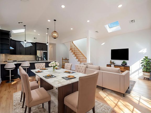 This brand new modern apartment is move-in ready in The Heights. This unit offers three bedrooms, 2 bathrooms, wide layout giving extra square footage and a rooftop. Lots of windows and sky lights that shine lots of natural light through to the open concept floorplan finished with classic design and modern upgrades like fresh red oak hardwood floors and high ceilings. The unit showcases a gorgeous staircase leading to the private rooftop with breathtaking western slope views and sunsets. A contemporary eat-in kitchens offers clean Quartzite island, counters and a bespoke backsplash, plus seamless custom cabinetry and stainless LG appliances. The open concept dining living also has a large pantry and a Juliette balcony. The primary ensuite has glass doors to a private balcony plus large built out California closets. Bathrooms feature elements like a vanity with smart mirrors, glass shower with spa like multi-head system. A designated utility area features full size LG washer and dryer and additional storage. Jersey City Heights is known for its eclectic vibe, great community, excellent schools and accessibility to NYC and surrounding areas. Street parking only. No pets. Available now.