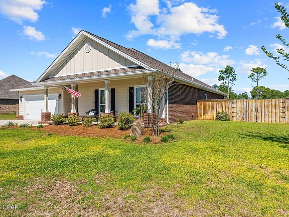 Retreat to the primary bedroom featuring tray ceilings, bayou views, and a lavish ensuite bathroom complete with a double sink vanity, walk-in shower, soaker tub, and generous closet space. Three additional bedrooms offer ample comfort. This smart home is part of a vibrant community offering resort-style amenities such as a pool, playground, and pavilion with gas grills. Conveniently located just 22 miles from Tyndall AFB, 25 minutes from Pier Park, and 15 minutes from Lynn Haven's shopping and dining hotspots, this home offers the ultimate blend of luxury and convenience.