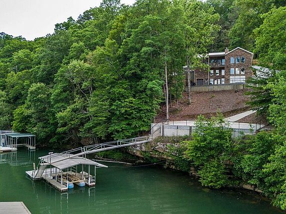 Soaring ceilings & lakeside windows draw the eye to breathtaking views of Clear Creek. Let's also point out that on those perfect evenings the Modern Glass Doors in the lower level can be raised to combine Indoor/Outdoor space - Perfect for Football weather! The 218' of waterfront Lakeside offers a large patio leading to your Single slip, Solar Powered Dock nestled in a protected cove on deep water, providing easy access for boating, fishing, or simply soaking up the sun. Ideally situated just 20 minutes from Jasper, offering convenient access to all the shops, restaurants, and amenities Jasper has to offer.