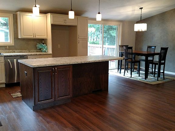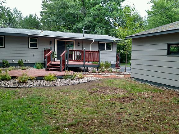 Newly remodeled open concept home, completely updated this year with new electrical, plumbing, and central air. Kitchen features large island with room for bar stools, granite sink, and stainless steel dishwasher. Small dining area and sliding door that opens to the backyard and multi level deck. Upstairs bathroom has tile floors and shower and double sink. lower level features a large carpeted family room, office and walk in storage closet. Unfinished portion could be used as a workshop and has washer and dryer hook ups. Interior, exterior and decks professionally painted this summer. Yard also was just landscaped. 1 stall detached garage and large partially fenced backyard. Call Louise for a showing, 715-360-5404.