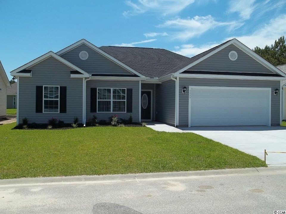 This 3 bedroom home has split bedrooms, a relaxing covered front porch and a rear screened porch. Open floor plan with tray ceiling in the dining area and vaulted ceiling in the great room. Kitchen has breakfast nook with bay window, breakfast counter, stainless steel appliances. Laundry room. Master suite has tray ceiling, ceiling fan with light, walk in closet, garden tub, separate shower and double sinks. Smooth ceilings, 30 year architectural roof shingles, gutters, sodded yard, fully finished and painted garage with a mop sink, automatic door opener and pull down stairs to attics storage. Gated community, pool and clubhouse, close to North Myrtle Beach, shopping, dining, etc. Video is for illustrative purposes only and may be of similar home built elsewhere. Square footage is approximate and not guaranteed. Buyer is responsible for verification.