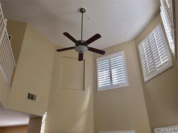 This ideally located home in the gated tract of Northwood Villas in Northwood Pointe features a popular floorplan with 2 bedrooms upstairs and one downstairs that is currently set up for an office/den. This is the largest floorplan in the tract. The entrance into the living room greets you with dramatic high ceilings, lots of windows for an abundance of natural light and a fireplace. The kitchen features a breakfast bar and opens to the comfortable dining room and living room, creating the open floorplan downstairs. Both bedrooms upstairs are en-suites and the master enjoys closet organizers, a spacious master bathroom with upgraded tile flooring, and plantation shutters. Other features include wood flooring, neutral color carpeting, ceiling fans, plantation shutters and just the feeling of your own home. Downstairs leads to an inviting patio for outdoor living and entertaining. There is also a 2-car attached garage with quick easy access to the front gate. Located ideally in Northwood Pointe, you will have easy access to all amenities including walking distance to award winning Canyon View Elementary and Nationally ranked Northwood High School, community parks and pool, including Meadowood, Hicks Canyon park and walking trail, shopping, dining and much more. And just a few steps away from your front door is the Greystone Villas community pool, spa and amenities. ** Note the downstairs bedroom is currently set up as office/den with built-in.