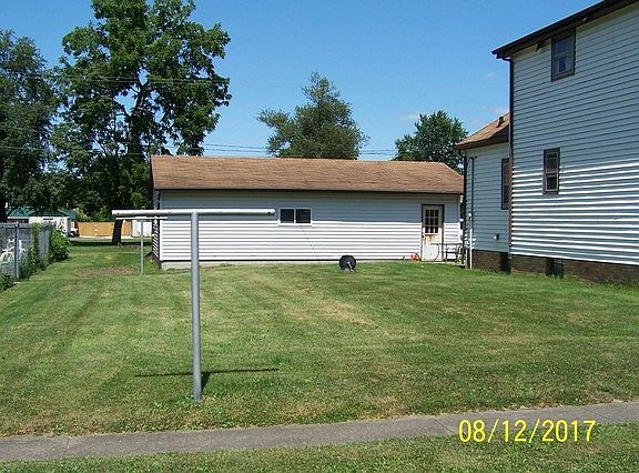 Looking for a home with a big yard? Well this is it! This home and large two car garage sits on a total of three lots. Between the house and garage. Thier is a large area of concrete that is great for intertaining. The home itself has a large front porch, good sized living room, eat-in kitchen, nice back porch, and a full unfinished basement. It will make a great starter home!
