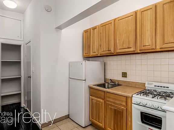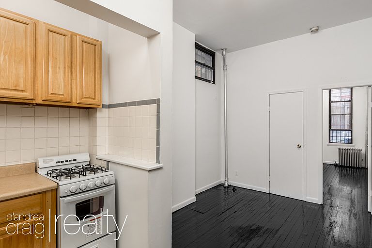 Quietly tucked away to the back of this pre-war building sits a large (3) room 1 Bedroom apartment. Wide plank wood floors, and 11ft high ceilings give a vaulted feel as you enter into an eat-in kitchen with tile backsplash, along with full size appliances. Off the kitchen is a full tiled bathroom with soaking tub. Separating the kitchen is the middle living room with a large closet, plus additional storage above. Rounding out the apartment is the queen size bedroom with two large windows overlooking the backyard. Conveniently located close to transportation, directly next-door to laundromat, and walking distance to all.