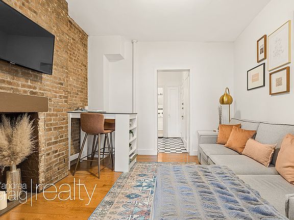 Spacious Two Room Studio in Kips Bay. Enter into a eat-in kitchen with above & below white cabinets, and full size appliances. Off the kitchen is the middle living room with a decorative fireplace and exposed brick walls. Quietly located to the back of the apartment is a king size bedroom with gleaming hardwood floors, crown moldings and large windows for excellent sunlight. Lastly, is the tiled bathroom with soaking tub. Conveniently located just minutes to the subway, bars/restaurants, laundromat, and grocery stores. -Heat & hot water are included in the rent -Cats OK -Live-in Super Smoking allowed:No