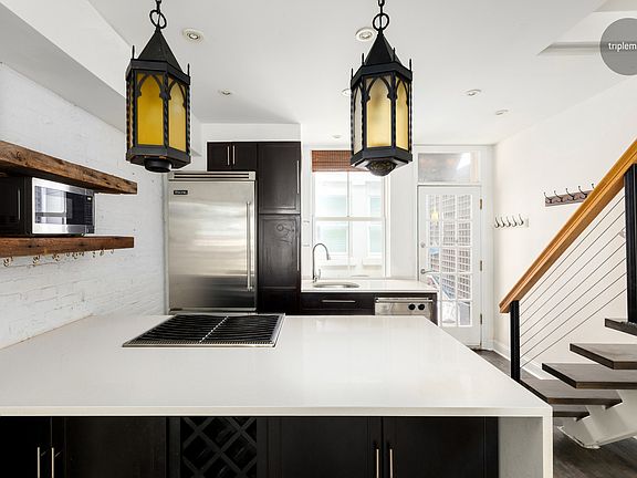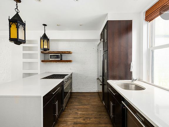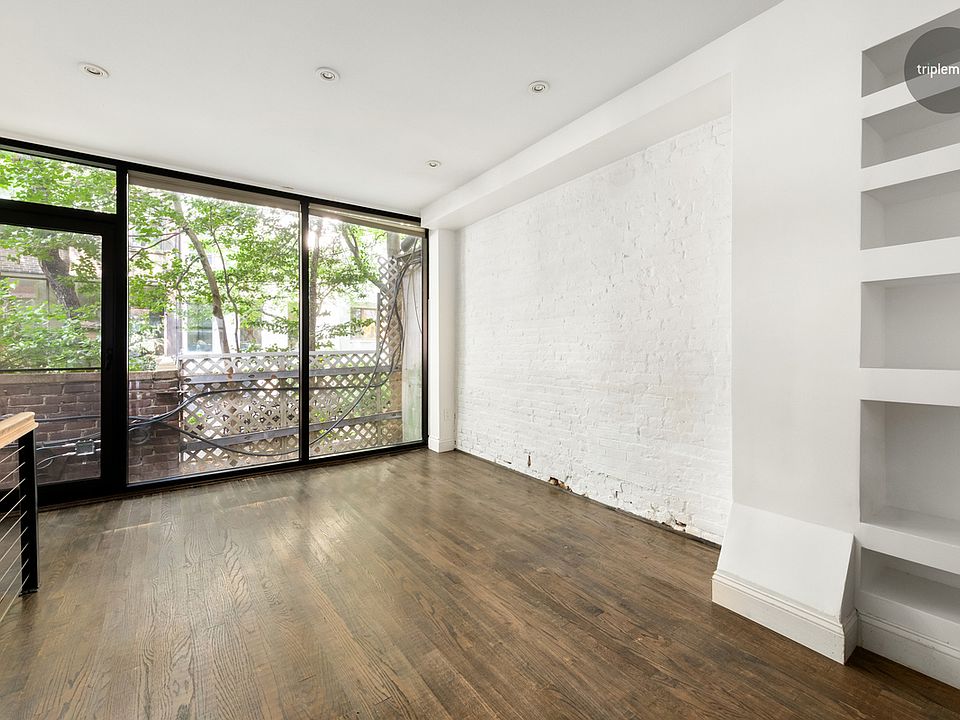 Private carriage house triplex with a terrace can now be yours. Through the main house you enter into the carriage house where you have your private entrance and no neighbors. The living room is open with great entertaining space and a full wall of floor to ceiling windows. The open, windowed, kitchen features Caesar Stone countertops, Viking range, dishwasher and refrigerator, and plenty of storage space. The master bedroom is situated upstairs and features plenty of space for a king-sized bed, a marble bathroom with shower and tub and a walk-in closet. The 2nd bedroom and 3rd/ home office have the ideal space for a full- or queen-sized bed. The apartment features a private terrace to inspire your inner gardener or just simply relax in the sun, enjoy the indoors with central air conditioning, and also a washer/ dryer. This home is sure to be your ideal space for years to come. This co-op is treated like a traditional rental and has no board approval.