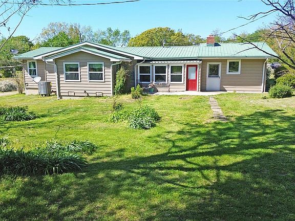 This home is located in town and sets on a nicely sized level lot with shade trees and park like setting backyard. Enjoy the variety of flowering plants while enjoying the large patio off the sunroom. This home has 3 bedrooms, 2 bathrooms, large front living room and family room with windows overlooking the big beautiful back yard. Spacious dining room has a brick fireplace with wood insert. Home is full of charm and move in ready. All new windows were put in 2022 as well as insulated garage door. Also new HVAC heat pump installed in Dec. 2021. Home has circle drive, in the front. Also has a driveway into the back from Tyson Alley.