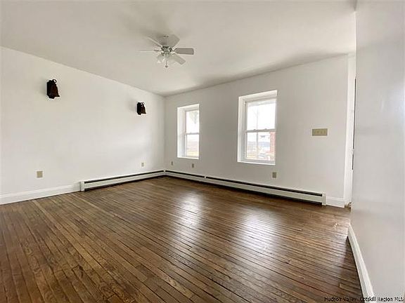Welcome to historic Ponckhockie, the new hipster destination on the Rondout waterfront. This 1850 home constructed of brick and bluestone features the original wide plank flooring on both the second and third floors. The ground floor offers an inviting dining room, galley kitchen,storage room and full bath. Located on the second floor is a spacious a bedroom with access to covered porch and expansive fenced in backyard, large bright living room with access to the front porch, where you can take in the beautiful views of the Rondout Creek and the HudsonRiver. The stairs leading to the third floor are original to the home and lead you to another bright a living room, the 2nd bedroom and anadditional full bath. The house is convenient to shopping, dining, Kingston Point Beach and Hasbrouck Park, and the historic Rondoutwaterfront. Ten minutes from Exit 19 on the NYS Thruway, and within two hour drive to NY Trash pick up is provided by the city and the landlord covers that expense. Heat, hot water and electricity are provided by Central Hudson and the tenant will be responsible as well as yard maintenance and snow removal. W/D hookup available.