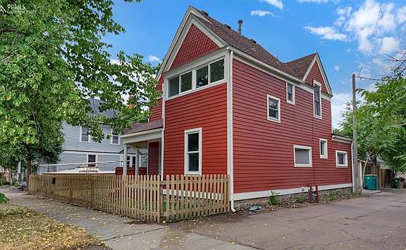 Delightful turn of the century Victorian home within walking distance of Colorado College & downtown. Feel welcomed by the mature shade trees as you enter through the picket fence and step onto the front porch. Historic characteristics include antique wood molding, built-in china cabinet(Dining Room),and antique wood mantel over tiled fireplace (non-working:Living Room). The 3 bedrooms, sun room, and full bath upstairs allow for convenience, as the main level then provides for relaxing and entertaining. This charming home has a freshly painted exterior and interior (upstairs ), brand new carpeting, newly refinished hardwood flooring, and freshly installed sod. Turn of the century style shines in the details of pocket doors, original wide moldings, solid doors, newel post banister, and glass front built-ins. Don't miss a chance to own a great house in a convenient central location!