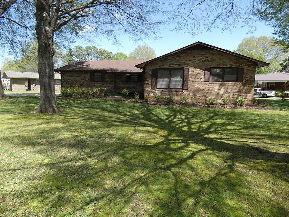 Nice brick home on corner lot! 3 bedrooms 2 bathrooms, living room and a den,good size utility room, Covered concrete front and rear porchs, garage,partly fence rear yard,small outbuilding, New HVAC unit installed is 2019
