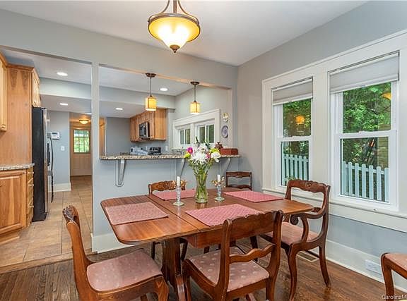 Renovated 1920s West Asheville Bungalow! This well-maintained home has a new roof, gutter guards, windows, and gas furnace '16. An open floor plan that is bright and all on one level is ready to move in. Living room with hardwood floors and gas fireplace opens to the dining area and kitchen. The spacious kitchen has tons of storage and renovated with granite and stainless appliances. Enjoy the front covered porch and the beautiful landscaping and fenced in yard. The lot runs from Fairfax to Greeley which provides a rear driveway with parking. Great location; 10 minutes to downtown AVL and 1/2 mile from Haywood Road.