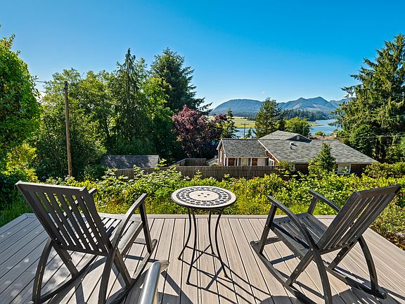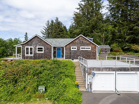 Quintessential Wheeler Residential Home Compound. Home and free-standing Studio building situated on 3 separate parcels; striking views of Nehalem Bay, Nehalem River and Neahkahnie Mountain, from the home's open living concept (with amazing natural light) and 2 decks for extra living space.This 2008 charmer has been meticulously updated; kitchen (granite counters, custom cabinets, stainless steel appliances) many other features such as locally sourced clear Doug Fir wood floors, built-ins and doors, /lot. Beautifully designed gardens/landscape, hot tub with privacy enclosure, 3 lots = .33 acres/14,375 SF, 3rd lot vacant, ready for shop installation, with apartment, please note City Manager response for building, or retain park like setting. Oversized 2 vehicle garage w/ generator plug-in and a professionally installed plug in to home electrical panel, work bench and deck above garage. Abundant on-site parking. Garden Shed. Attractive front entry stairs and landing with at grade entry from driveway path along north side of home. Properties like this rarely come to market in Wheeler, ready now for the new owner!