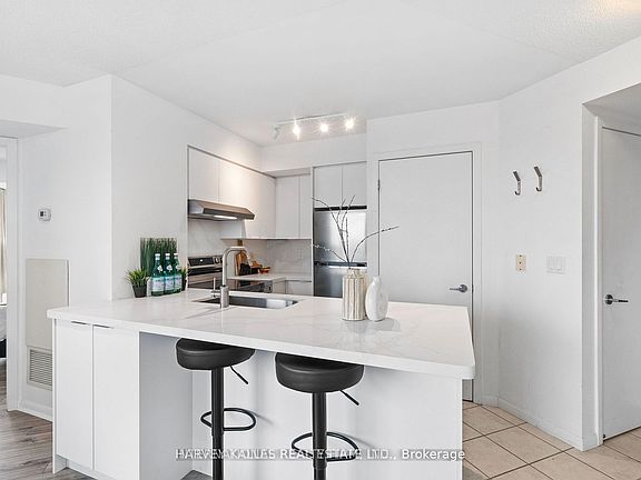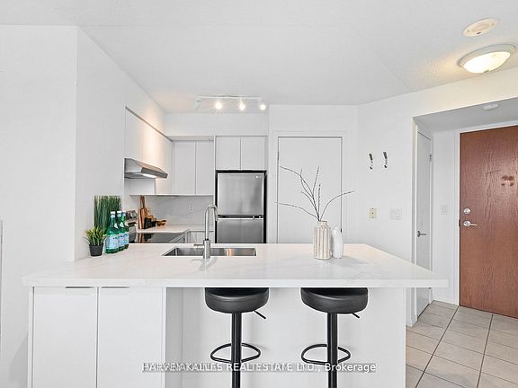 Discover outstanding value in this 2-bedroom/l-Bathroom corner suite at Waterpark City. Located in the heart of Fort York, this well-laid-out unit offers a functional split-bedroom floor plan, a spacious open-concept living area, and floor-to-ceiling windows that bring in natural, light throughout the day. The kitchen features full-size appliances and ample storage, while the primary bedroom includes double closets and unobstructed city views. Enjoy a private balcony perfect for coffee or evening downtime. One parking spot and one locker are included for added convenience. This unit has been recently renovated (2025: new kitchen cabinets, countertop, sink, faucets, and curtains; appliances purchased in 2023).Residents enjoy a full selection of amenities including a fitness centre, indoor pool, concierge, rooftop terrace, party room, and visitor parking. steps to the waterfront, Coronation Park, Loblaws, TTC, Billy Bishop Airport, King West, and easy access to the Gardiner. A solid option for first-time buyers, investors, or anyone seeking a move-in-ready downtown home in a well-managed building.