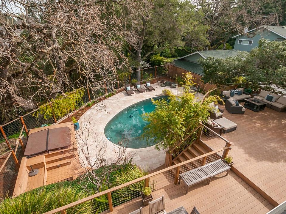 A RARE FIND. Located on a private drive off Frances lane you will find this SPECTACULAR SERENE & PRIVATE CREEK SIDE PROPERTY on an approximately 13,500 sq ft lot. The house was custom built in 1966 and features 4 spacious bedrooms, 3 full baths and a 2 car garage. The entry way takes you into the open living room and dining area with hardwood flooring and cathedral ceilings. The kitchen opens to the large family room. All the key areas of the house overlook the stunning and private backyard. The backyard is your own private oasis offering year round entertainment with it expansive trek decking, gated pool area and separate hot tub. Mature trees surround you as you take it all in.